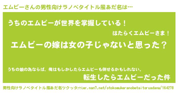 | 女子向けラノベタイトル風あだ名 | 『エムビー様がみてる』 |