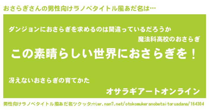 | 意味不明あだ名 | 『住所不定無職おさらぎ(47歳)』 |