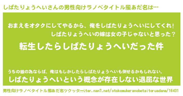 | 女子向けラノベタイトル風あだ名 | 『しばたりょうへいの玉の輿計画!』 |