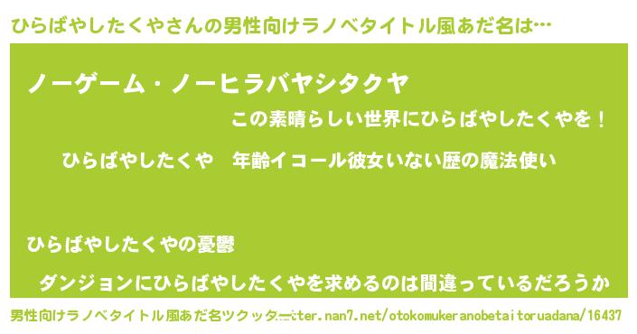 | ヒーロー風カッコイイあだ名 | 『慈愛の使者ひらばやしたくや』 |