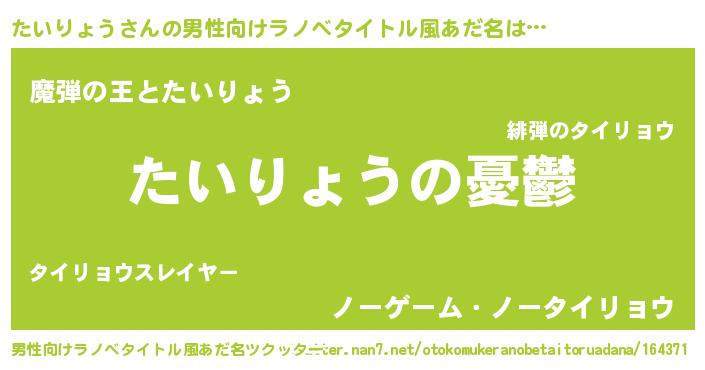 | 女子向けラノベタイトル風あだ名 | 『(仮)たいりょうのやんごとなき事情』 |
