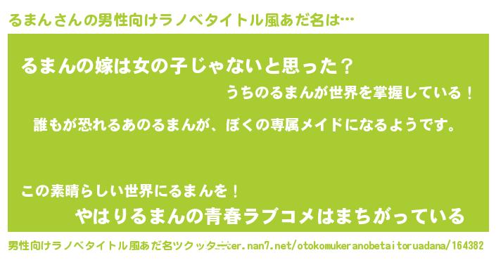 | ヒーロー風カッコイイあだ名 | 『ネオルマン』『幻影騎士ルマ』 |