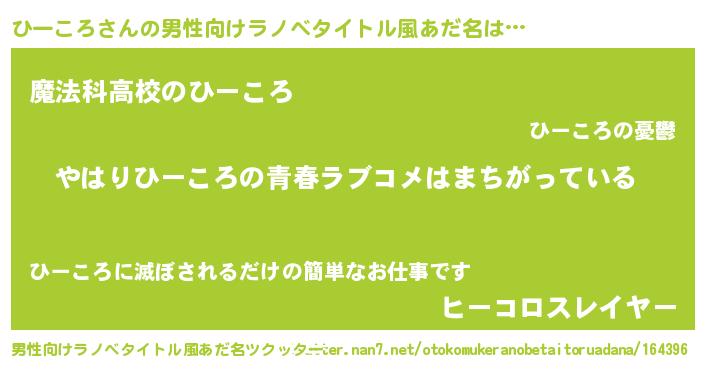 | 女子向けラノベタイトル風あだ名 | 『ひーころの雑貨屋さん』 |