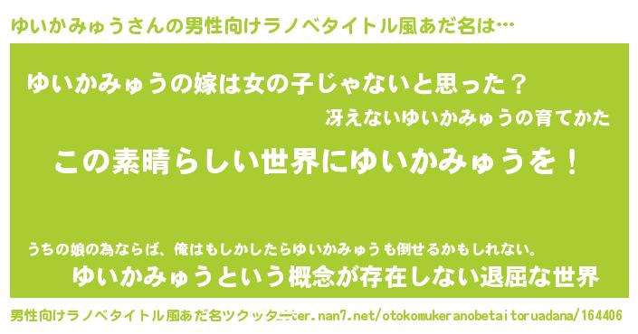 | 女子向けラノベタイトル風あだ名 | 『悪役ゆいかみゅうに転生したようですが、知った事ではありません』 |