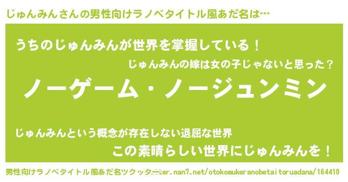 | 女子向けラノベタイトル風あだ名 | 『死神じゅんみんの再婚』 |