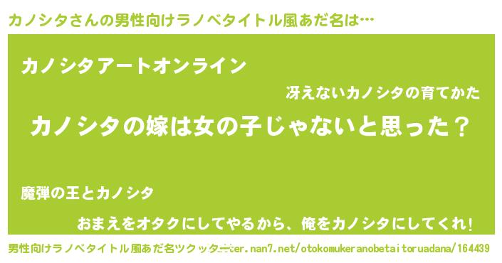 | ヒーロー風カッコイイあだ名 | 『幻影騎士カノ』『スーパーカノシタ』 |