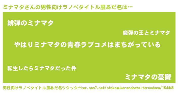 | 女子向けラノベタイトル風あだ名 | 『ミナマタの雑貨屋さん』 |
