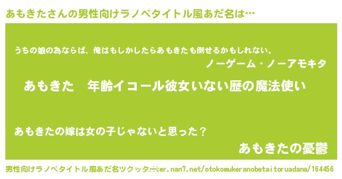 | 女子向けラノベタイトル風あだ名 | 『あもきたの玉の輿計画!』 |