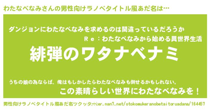| 意味不明あだ名 | 『とにかく怪しいわたなべなみ』 |