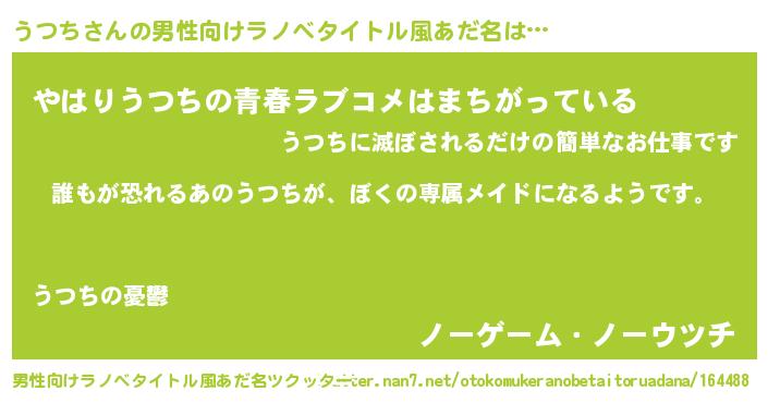 | 胡散臭い通販商品みたいなあだ名 | 『来世でも幸せになれる水素水…その名も「うつち」』 |