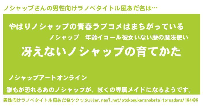 | 女子向けラノベタイトル風あだ名 | 『男装ノシャップの憂鬱な任務』 |