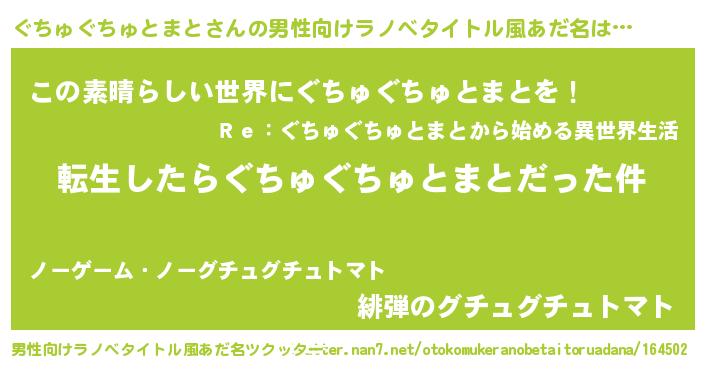 | 胡散臭い通販商品みたいなあだ名 | 『世界中を虜にした100年もののヴィンテージワイン…その名も「ぐちゅぐちゅとまと」』 |