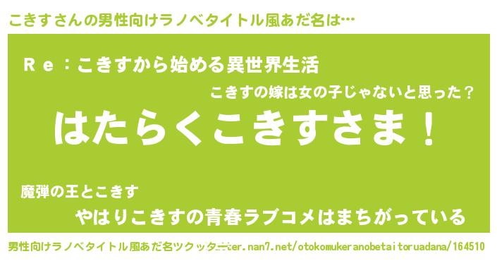 | 意味不明あだ名 | 『自称こきす』『こきすフォーエバー』 |
