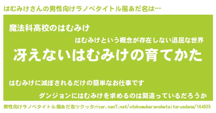 | 意味不明あだ名 | 『自称はむみけ』『永久保存はむみけ』 |