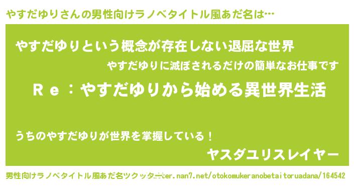 | ヘコむあだ名 | 『やすだゆり(笑)』『豆乳』 |