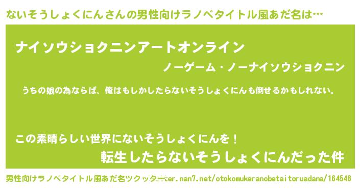 | ファンタジー風あだ名 | 『エターナルナイソウショクニンー』 |