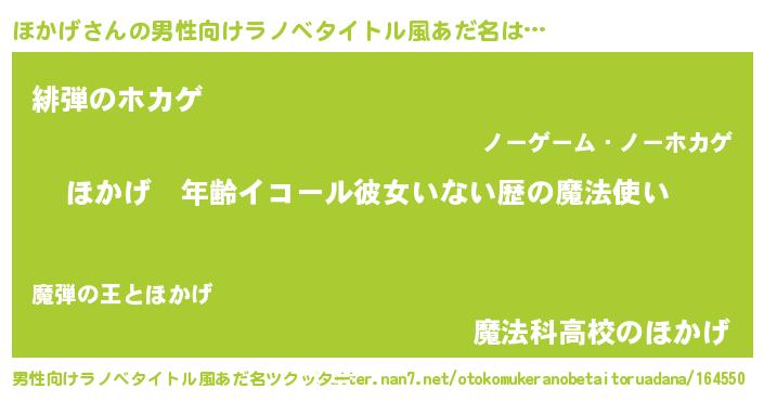 | 胡散臭い通販商品みたいなあだ名 | 『芸能人もオススメする高麗人参…その名も「ほかげ」』 |