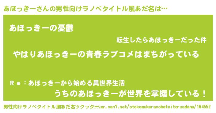 | 女子向けラノベタイトル風あだ名 | 『あほっきーの雑貨屋さん』 |