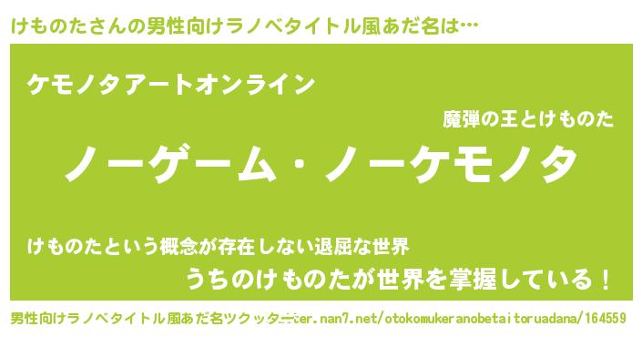 | ヘコむあだ名 | 『けもふぇ~』『けものた(笑)』 |