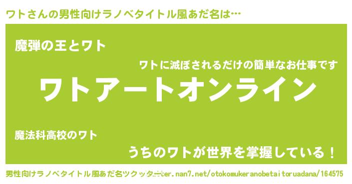 | 女子向けラノベタイトル風あだ名 | 『誰かこのワトを説明してください! ~契約から始まるウェディング~』 |
