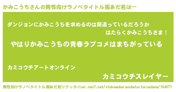 | 女子向けラノベタイトル風あだ名 | 『かみこうちの雑貨屋さん』 |