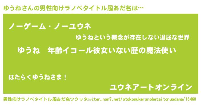 | ヘコむあだ名 | 『ゆうもー』『ゆうね(笑)』『ゆうお』 |