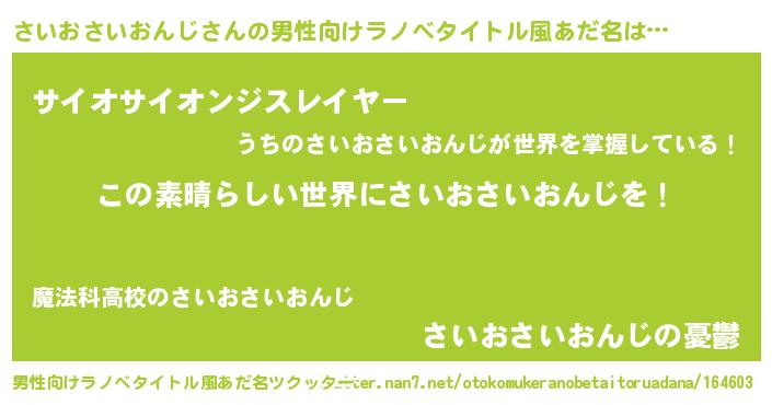 | 胡散臭い通販商品みたいなあだ名 | 『あなたにだけ特別に提供する限定10本のレアな日本酒…その名も「さいおさいおんじ」』 |