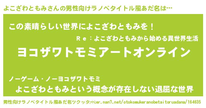 | 胡散臭い通販商品みたいなあだ名 | 『億万長者になれる霊験あらたかなお札…その名も「よこざわともみ」』 |