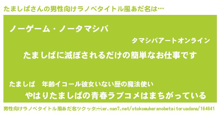 | ヒーロー風カッコイイあだ名 | 『天空の使者たましば』『天弓騎士タマ』 |