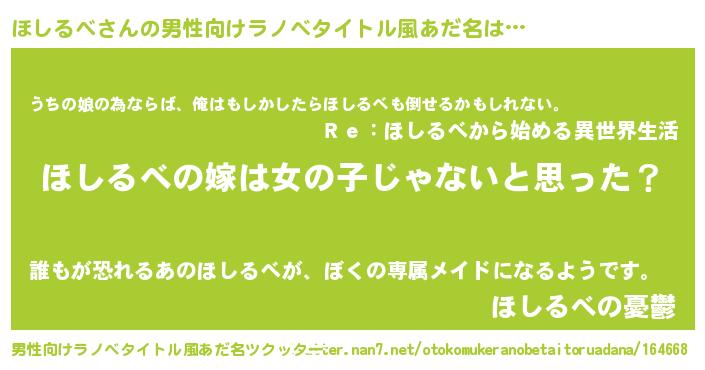 ほしるべさんの男性向けラノベタイトル風あだ名をツクッター!