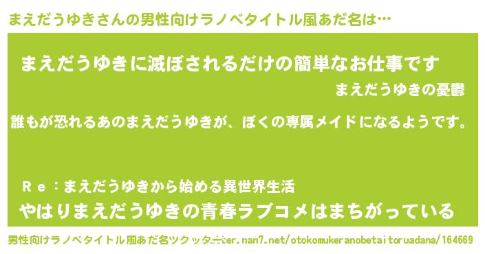 | 女子向けラノベタイトル風あだ名 | 『まえだうゆきの契約王妃』 |