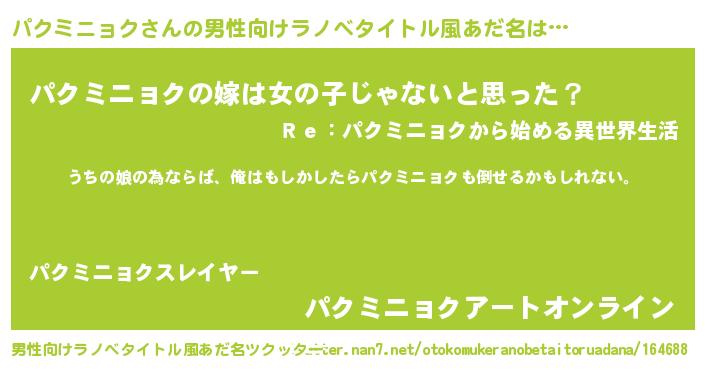 | ファンタジー風あだ名 | 『エターナルパクミニョクー』 |