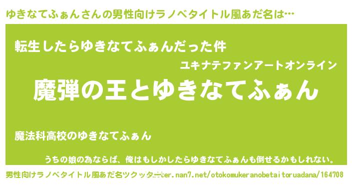 | 女子向けラノベタイトル風あだ名 | 『乙女ゲームの破滅フラグしかない悪役ゆきなてふぁんに転生してしまった…』 |