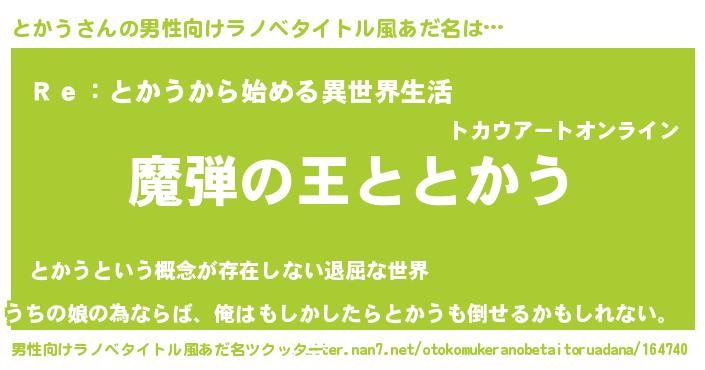| ヒーロー風カッコイイあだ名 | 『仮面トカダー』『究極戦士トカウ』 |