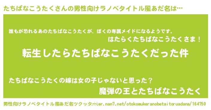 | 胡散臭い通販商品みたいなあだ名 | 『来世でも幸せになれる招き猫…その名も「たちばなこうたく」』 |