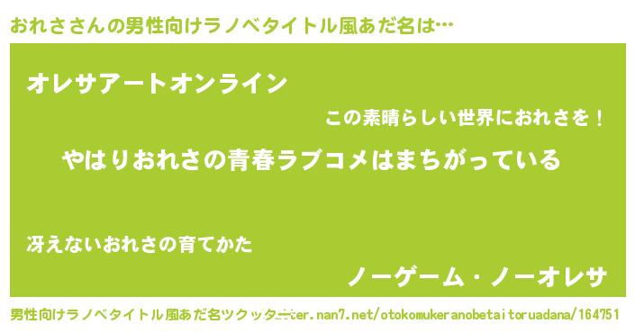| 女子向けラノベタイトル風あだ名 | 『おれさ伯爵の花嫁』『おれさ恋絵巻』 |