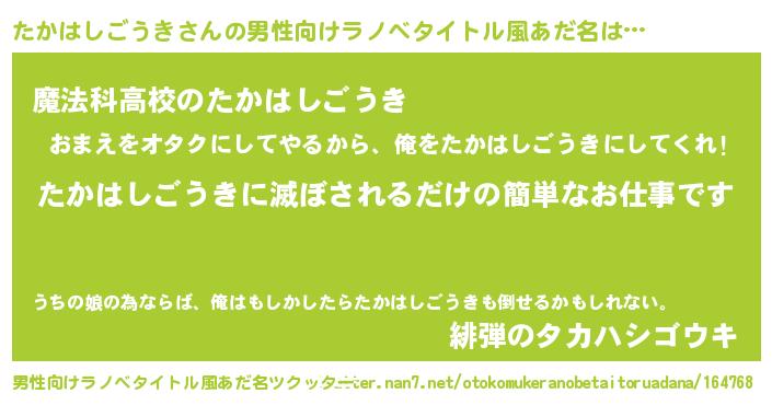 | ヒーロー風カッコイイあだ名 | 『究極戦士タカハシゴウキ』 |