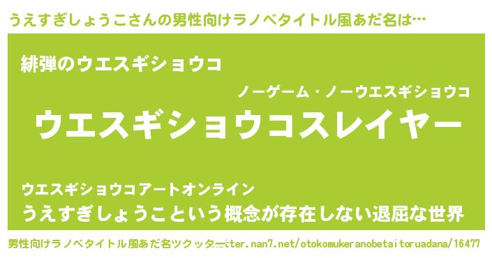 | ヘコむあだ名 | 『うえすぎしょうこ(笑)』『うえもー』 |