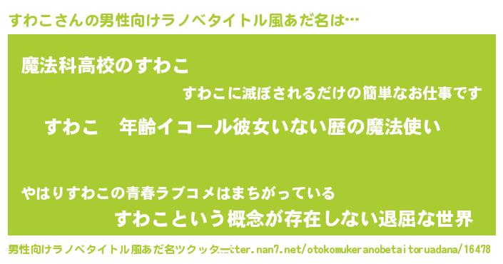 | 意味不明あだ名 | 『ニラ科すわこ属』『自称すわこ』 |