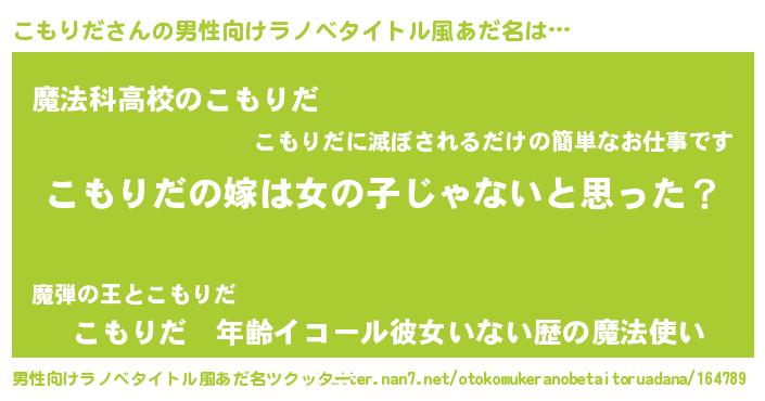 | 女子向けラノベタイトル風あだ名 | 『こもりだの卵を拾いまして』 |