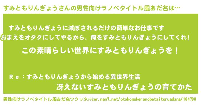 | 意味不明あだ名 | 『住所不定無職すみともりんぎょう(53歳)』 |