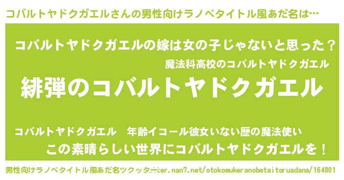 | 意味不明あだ名 | 『とにかく怪しいコバルトヤドクガエル』 |