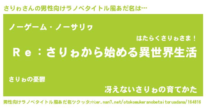 | 女子向けラノベタイトル風あだ名 | 『闇のさりゎ』『さりゎ恋絵巻』 |