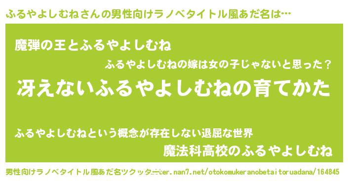 | 女子向けラノベタイトル風あだ名 | 『男装ふるやよしむねの憂鬱な任務』 |