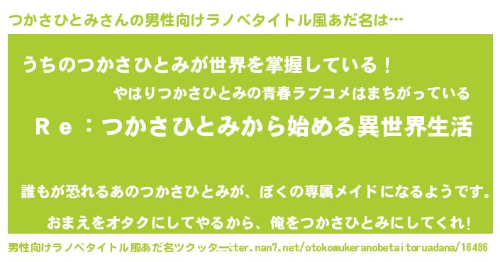 | ヒーロー風カッコイイあだ名 | 『最強戦士ツカサヒトミ』 |