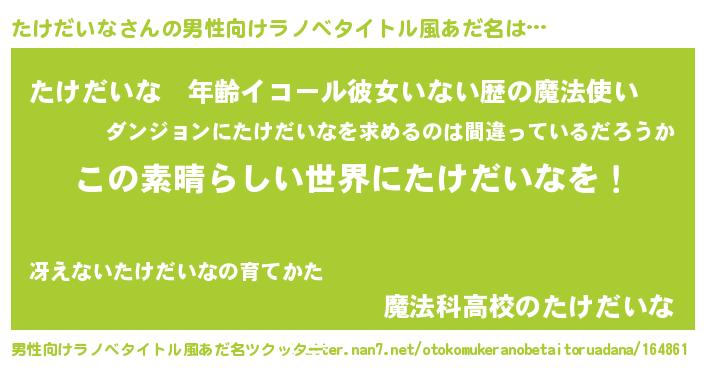 | 意味不明あだ名 | 『住所不定無職たけだいな(56歳)』 |