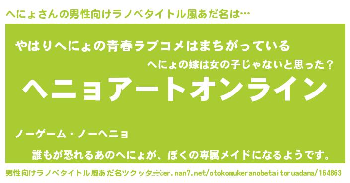 | 胡散臭い通販商品みたいなあだ名 | 『モテモテ間違いなし霊験あらたかなお札…その名も「へにょ」』 |
