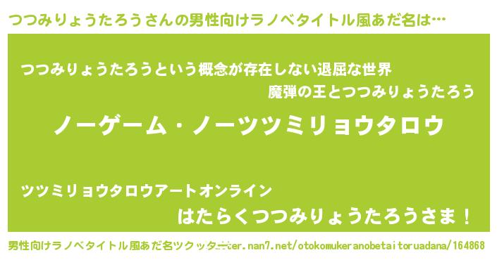 | 女子向けラノベタイトル風あだ名 | 『死神つつみりょうたろうの再婚』 |