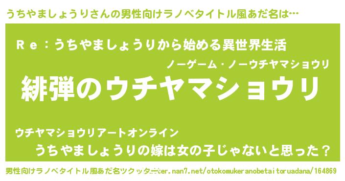 | 意味不明あだ名 | 『自称うちやましょうり』 |