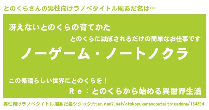 | 女子向けラノベタイトル風あだ名 | 『とのくら恋絵巻』『闇のとのくら』 |